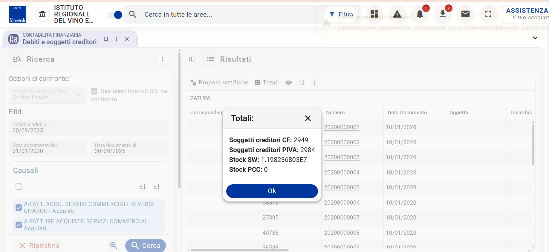 Total amount of debts and number of creditor companies (art. 33, c. 1, legislative decree no. 33/2013)